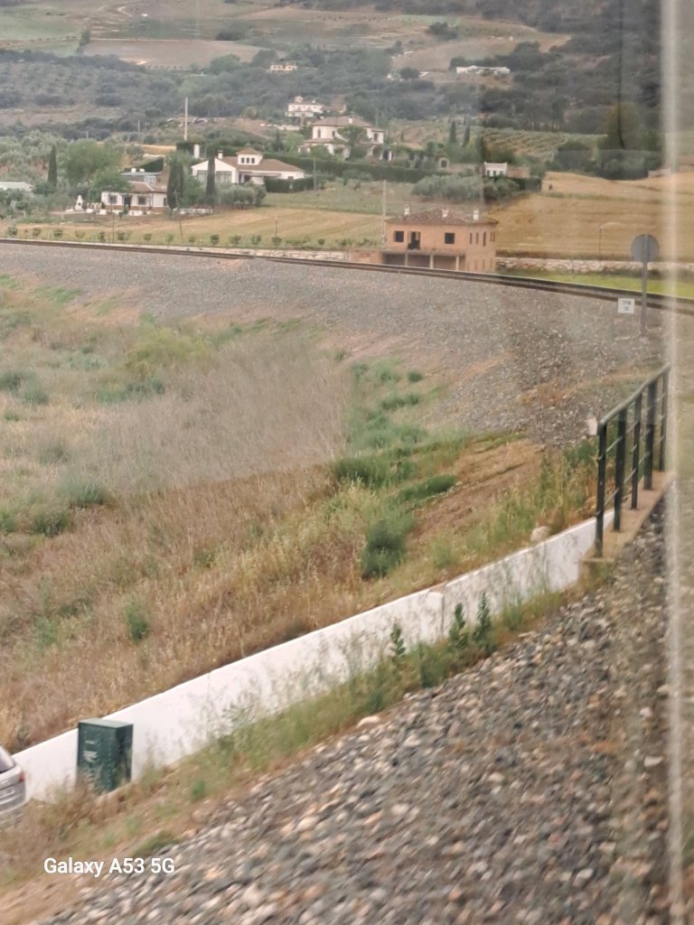 Jedenfalls – abgesehen von einigen High-Speed-Trains fahren ganz, ganz wenige „Personenzüge“ hier weg, der meine hatte natürlich wieder 35 Minuten Verspätung (bei der Ankunft in Algeciras eine Stunde). Das erinnert mich verdammt nochmal an meine Interrail-Reise vor genau 50 Jahren. Mein Kollege und ich befuhren die selbe Linie und damals blieb der Zug mehrmals auf offener Strecke stehen. 10 Minuten, dann eine halbe Stunde, dann wieder 20 Minuten usw. Nur gab es damals noch keine Klimaanlage in den Zügen, dafür aber auf jedem Fuzzi-Bahnhof Leute, die kühles Wasser verkauften. So, bin wieder einmal ein bisschen abgeschweift – – – von Antequera bis Algeciras, das war wieder eine äußerst interessante Fahrt.