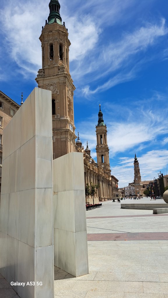 …. ich bin mir seit heute nicht mehr so sicher, welcher Stadt ich den Vorzug geben soll. Salamanca mit dem wunderschönen Plaza Mayor oder doch Zaragoza mit dem nicht weniger schönen Plaza del Pilar. Wahrscheinlich aber doch Ersterer, weil in S. haben die Stadtväter eine Verschandelung mit „moderner Kunst“ bisher glücklicherweise vereitelt, in Z. hat man anscheinend versucht, den Platz mit Gewalt zu verunstalten. — Bitte versteht mich nicht falsch, aber ist es nicht ein Wahnsinn, wenn man historisch gewachsene Bausubstanz durch derartige neumoderne Dinger verdeckt, verschandelt und in den Hintergrund rückt? Kein temporäre Ausstellung, nein, sondern irdendwelches „Glumpez“, welches die Gesamtheit dieses Platzes meiner bescheidenen Meinung nach sehr beeinträchtigt.