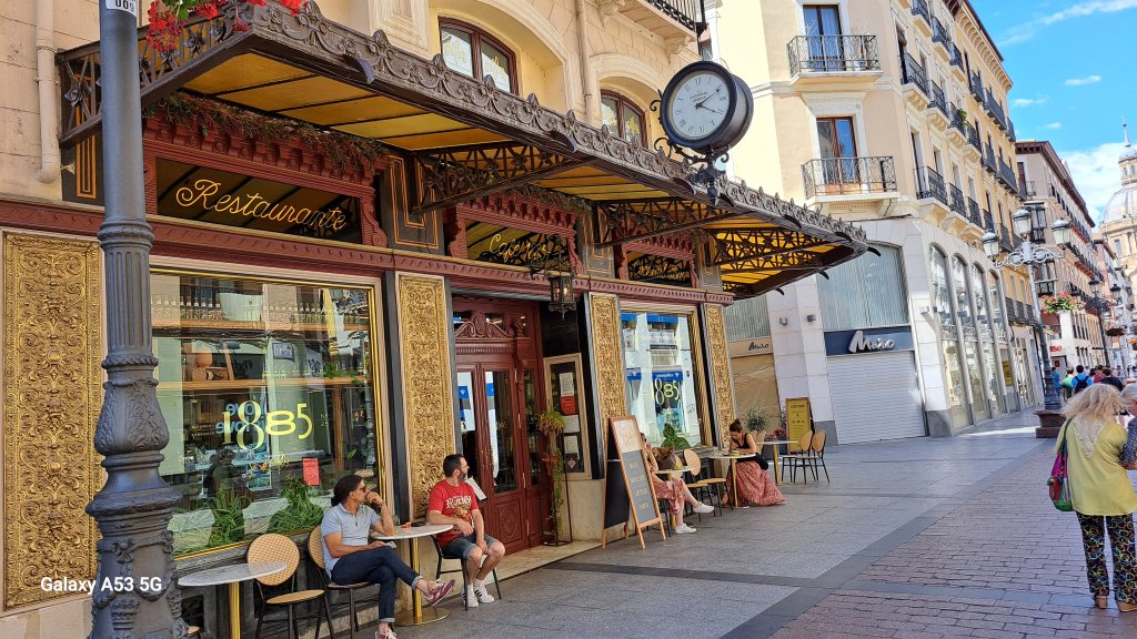Der weiter oben schon erwähnte Plaza del Pilar – benannt nach der Kathedrale – ist einer der größten Plätze Spaniens ohne Autoverkehr. Eine Längsseite ist mit jeder Menge historischer Bauten gesäumt, die gegenüberliegende Seite ist mit Cafes und Restaurants gespickt.