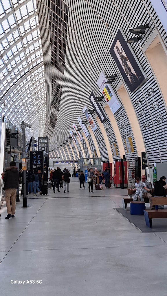 Aber der Reihe nach: Die erste Zug“reise“ am heutigen Tag hat mich ganze 5 Minuten lang vom TGV-Bahnhof in Avignon zum Bahnhof im Zentrum dieser Stadt geführt. Dort wollte ich eine Reservierung für Anfang Juni buchen, wo ich dann mit meiner Frau unterwegs sein werde (O. K., wieder ein Geheimnis gelüftet). „Ein Ticket von Avignon nach Girona/Spanien? – NEIN, das können wir nicht, das ist nämlich ein spanischer Zug.“ Und glatt: Die spanische RENFE fährt einmal am Tag diese Strecke mit einem ihrer Züge, deshalb verkaufen die Franzosen keine Fahrkarten bzw. Reservierungen dafür – so schaut nachbarliche Freundschaft im 21. Jhdt. aus … Dafür ist der TGV-Bahnhof riesig und architektonisch äußerst interessant …