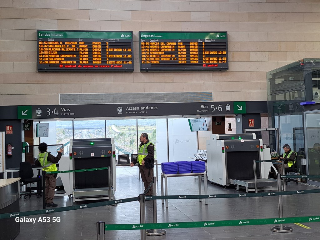 Ja, zumindest eine Zeitlang hatte es so den Anschein. – Vorerst aber noch die genauen Kontrollen am Bahnhof Segovia (so wie bei allen großen Bahnhöfen, von denen die Hochgeschwindigkeitszüge der RENFE abfahren): Koffer aufs Förderband; Geld, Gürtel und Jacke in die Plastikschachtel.