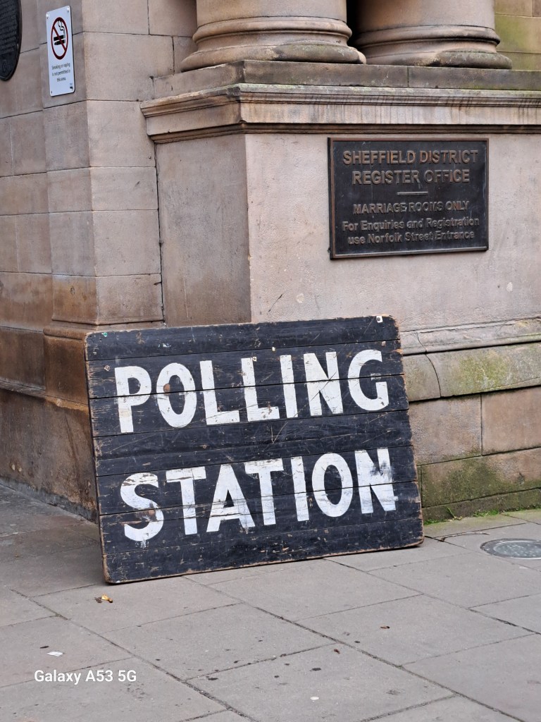 Noch eine nette Begegnung: Heute, am 2. Mai wird ja in vielen Städten der Bürgermeister gewählt, aber auch viele ranghohe Polizeibeamte müssen sich der Volkswahl stellen – so auch in Sheffield:
