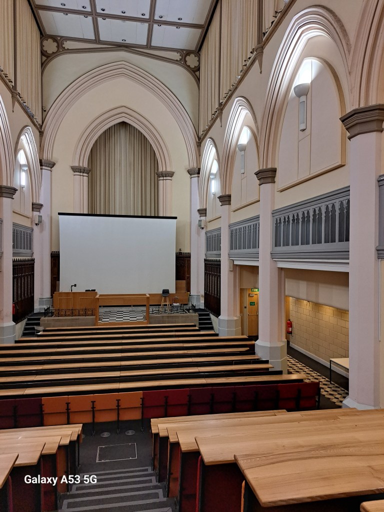 … hat man aus der Not eine Tugend gemacht und die ehem. Kirche kurzerhand zu einem Vorlesungssaal umfunktioniert, die Anwesen-heitsliste von gestern war jedenfalls recht erfreulich. – Ob so was bei uns auch einmal kommen wird???