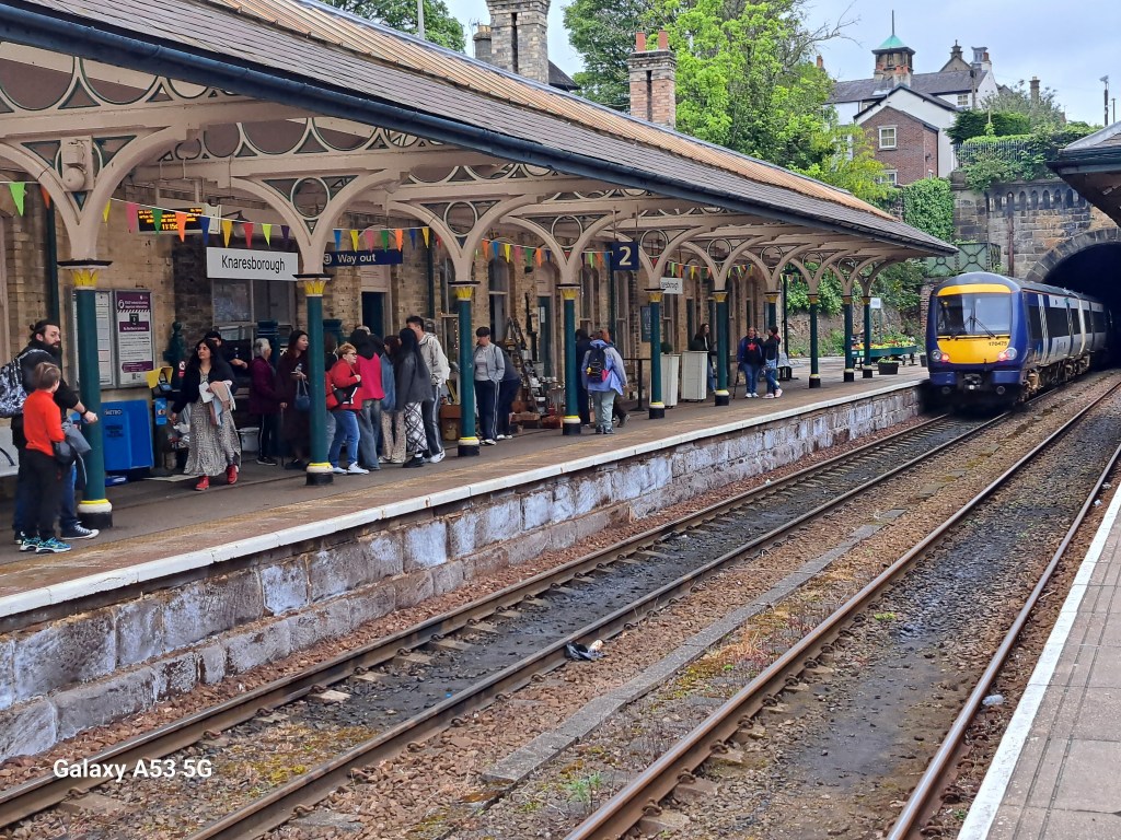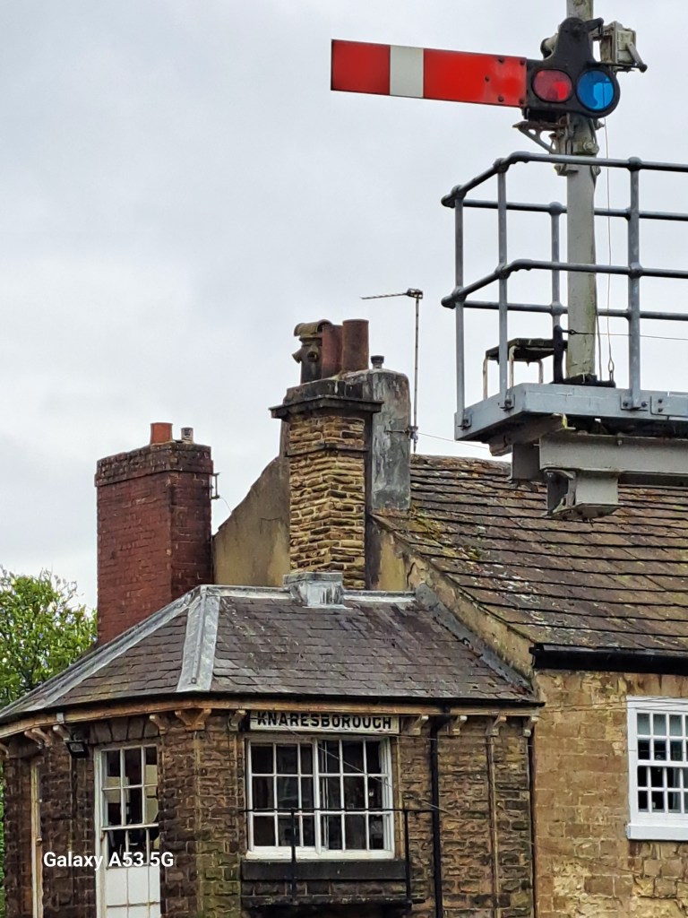 Heute machte ich mich auf nach KNARESBOROUGH (ja wirklich, es gibt auch englische Wörter, die mit einem „K“ beginnen). Ein kleiner, aber feiner Bahnhof, an dem der Signalwärter immer noch die Fahrt mit diesen altertümlichen Geräten freigibt. Vom oberen Ortsteil genießt man einen wunderbarer Ausblick auf den Eisenbahnviadukt und den unteren Teil.