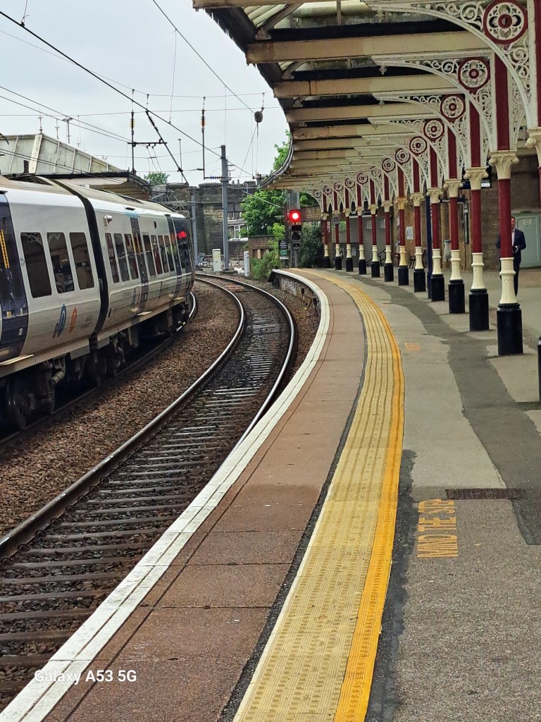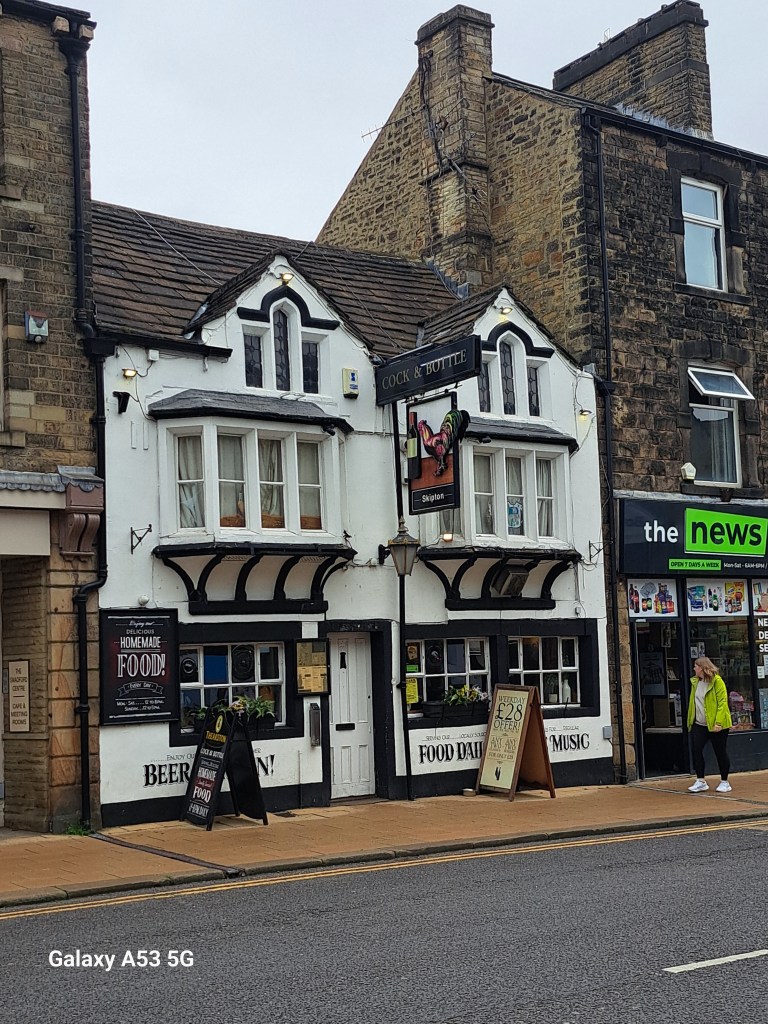 Wie der Zufall halt so spielt: Eigentlich hätte ich heute geplant, in Richtung Nordwesten, nach Carlisle zu fahren. Zweieinhalb Stunden in einem Nahverkehrszug war mir dann aber doch zu viel und so entschied ich mich um halb 7 Uhr in der Früh (!), den Zug nach Leeds zu nehmen – dann sehen wir ja weiter … Dort am Bahnhof spielte ich (wie schon öfter) den ahnungslosen Touristen und sprach eine Dame an einem der Schalter an, wo stand „Tickets and Information“. Mein (auswendig gelernter) Standartsatz: „Excuse me, please, I know that you are not working for the tourist information, but …..“. Aber – es hat schon wieder gewirkt! Die Dame hat mir ein paar in der Nähe liegende, lohnende Ziele angeboten. Da ich aber überall schon war, sagte ich beim 5. Vorschlag (SKIPTON) einfach „Oh, that would be a good idea“ und 5 Minuten später saß ich schon im Zug dorthin. Irgendwie war mir diese Ortschaft schon seit dem 1974-Jahr ein Begriff – der Bahnhof hat sich zumindest, so glaube ich, nix verändert.