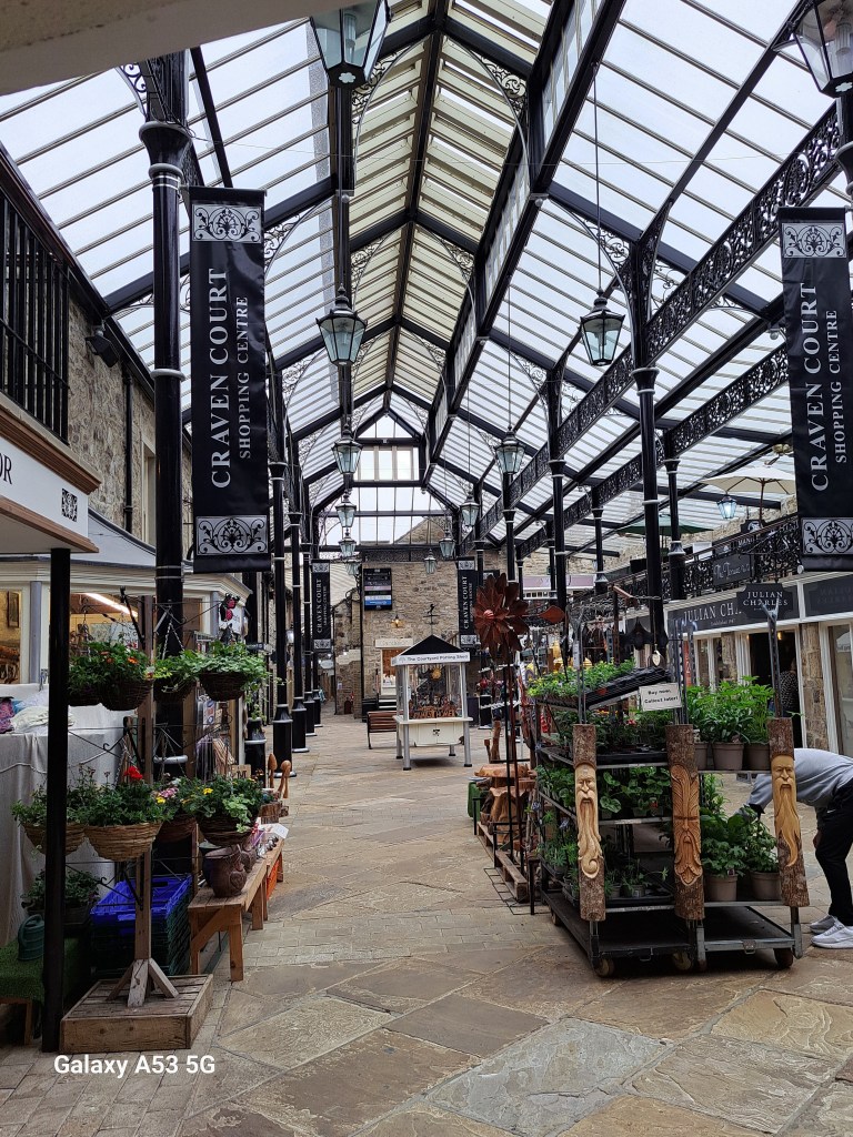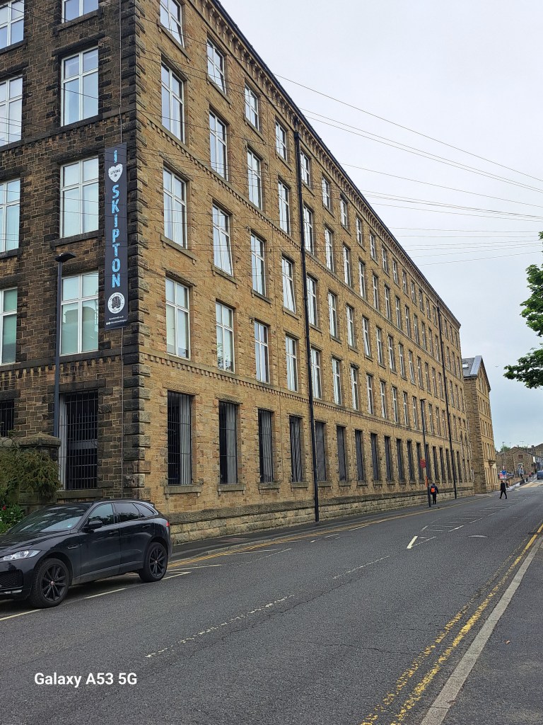 Dort ist mir nun das gleiche passiert, wie schon mehrmals zuvor: Ich erkundigte mich bei der Fahrdienstleiterin nach dem Weg zum Schloss, die meinte: „Come on, I´ll show you“, sauste aus ihrem ticket-office heraus, brachte mir sogar noch einen Stadtplan mit und zeigte mir vorne draußen, wohin ich gehen müsste. Aber nicht nur das, sie informierte mich, was ich wo sehen könnte, wie lange man unterwegs ist usw. Dabei ist SKIPTON (15.000 Einwohner) nicht gerade ein Bahnhof, wo gähnende Leere herrscht. — Diese Stadt war gegen Ende des 18. Jahrhunderts schon ein Zentrum der Textilindustrie – auch aufgrund der vielen Schafe, von denen ich auch schon ca. eine Mio. gesehen habe. Die alten, riesigen Stofffabriken hat man aber nicht dem Erdboden gleich gemacht, sondern restauriert und behutsam in Apartments umgebaut: