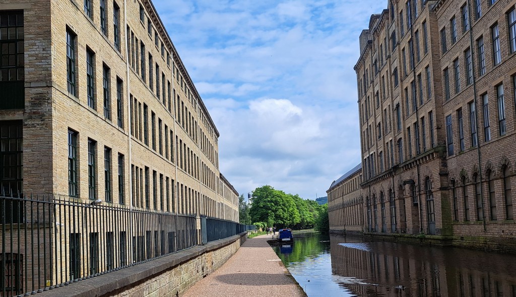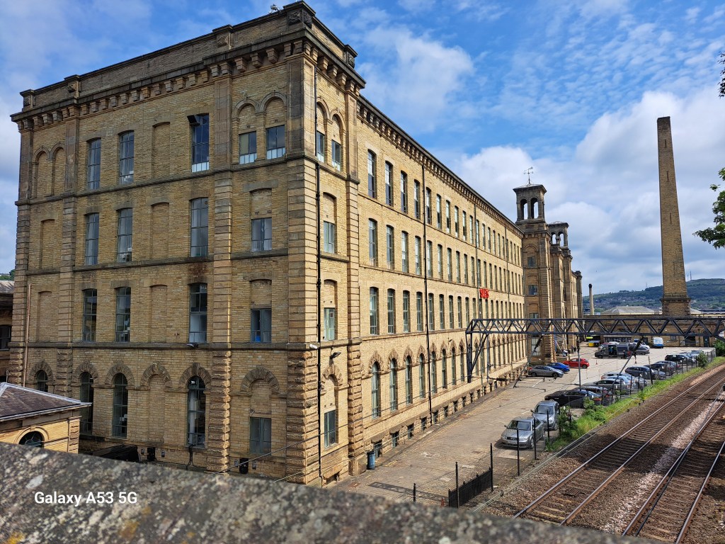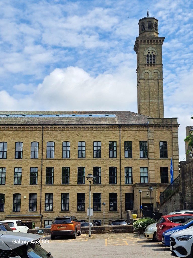 in Richtung S. ist mir eine Haltestelle aufgefallen, die auf ein Weltkulturerbe hingewiesen hat. Da musst ich am Rückweg natürlich aussteigen und vorbei schauen. SALTAIRE (nur ca. 4000 Bewohner) hat seit 2001 den Status, weil man die ehem. Salzmühlen kunstvoll restauriert und einem neuen Verwendungszweck zugeführt hat. Das Gebäude ganz links z. B. ist jetzt eines der Zentren des National Health Service.