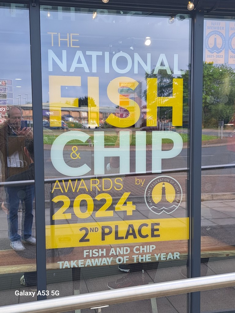 Zum Abschluss dieses wunderschönen Tages hat dann gerade noch gepasst, dass ich Fish & Chips gegessen habe. Aber nicht irgend welche, irgendwo, sondern in einem kleinen Laden, der heuer den 2. Platz in der britischen fish & chips-takeaway-Wertung erreicht hat. Ihr könnte euch vorstellen, wie es da zugegangen ist. Die Preise waren trotz der großartigen Auszeichnung nicht höher als sonst wo. Leider habe ich vom eigentlichen Gericht kein Foto, mir ist schon beim Anblick der Schachtel das Wasser im Mund zusammengelaufen, sodass ich gar keine Zeit mehr hatte, Fotos zu machen …