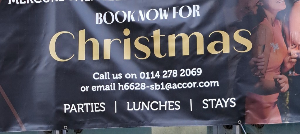 Schon seit Anfang Mai werden die Briten animiert, endlich ihre Christmas-parties zu buchen -//- Schauen zwar ähnlich aus, werden aber ein wenig anders geschrieben, die Brezen in good old England.