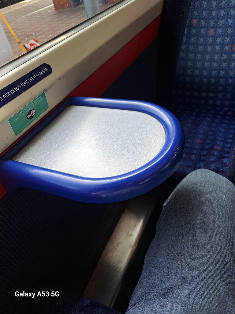 Die Tische in den englischen Zügen haben interessante Ausmaße – von winzig klein bis riesengroß, wo man sogar Schwierigkeiten hat, zum Fensterplatz zu gelangen.