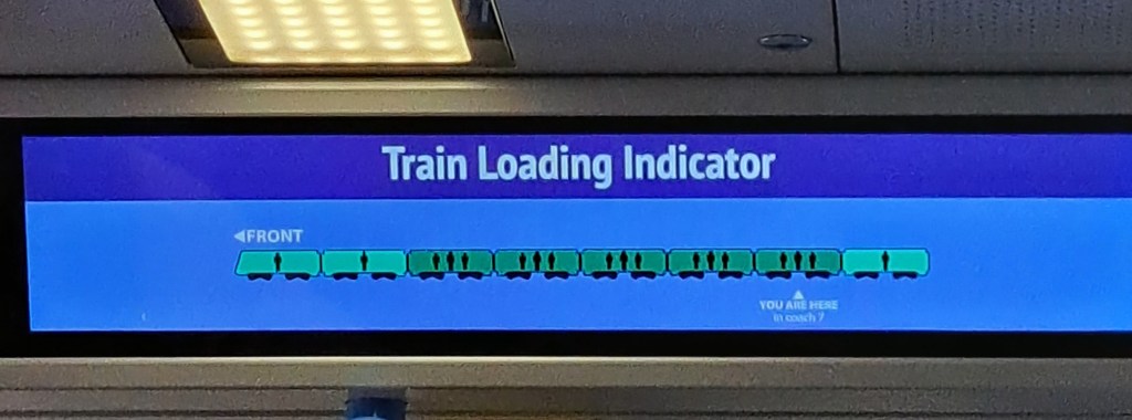 Zusätzlich gibt es dann noch eine Anzeige, wo die Toiletten sind und ob sie frei oder besetzt sind – gute Idee!