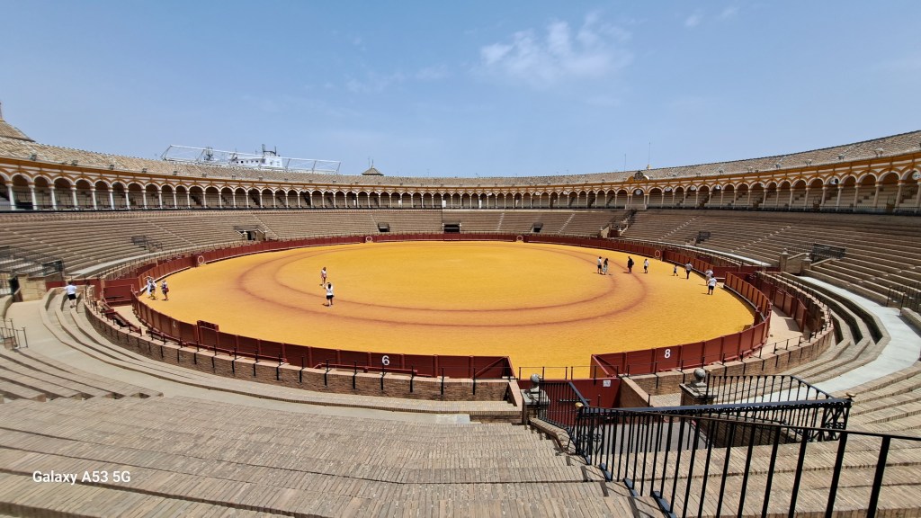 Die Stierkampfarena ist die zweitgrößte Spaniens und hat ein Fassungsvermögen von bis zu 18.000 Menschen. Wie man bei sengender Sonne und auf Ziegeln sitzend, Schulter an Schulter stundenlang ausharren kann, ist mir allerdings schleierhaft, aber eigentlich ja egal! – Jeder, der sich das antut – selber schuld!