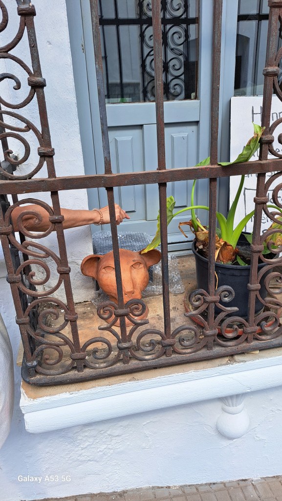 WO IST DER SCHLÜSSELTRESOR? Nicht an oder neben der Eingangstüre, nicht neben den Fenstern, auch nicht bei den Nachbarn! – Was tun? – Anruf bei der Besitzerin, die hat dann das Geheimnis gelüftet, das sie eigentlich schon früher hätte tun können: Hinter Gittern versteckt an der Nebeneingangstüre, zusätzlich hinter dem Tonviech, und dann noch noch mit Kunststoff abgedeckt: