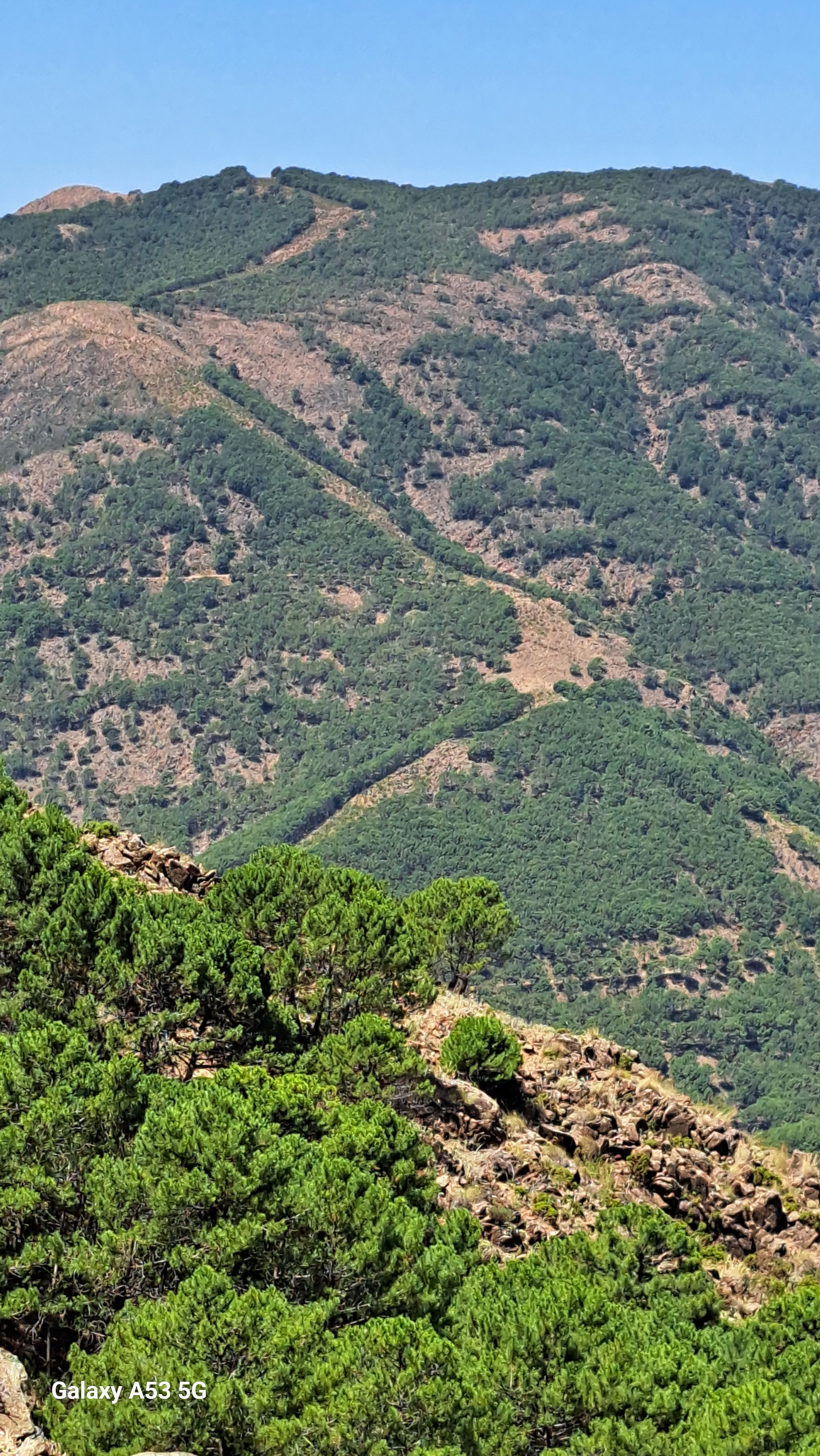 Bevor wir jedoch dorthin gelangten, noch ein paar Eindrücke von der Fahrt ESTEPONA – RONDA. Innerhalb einer halben Stunde gelangt man da von Null Meter auf über 1000 m Meereshöhe. Bemerkenswert sind die Schneisen, die man in den Wald bzw. das Buschwerk geschlagen hat. Die wirken als eine Art Feuerbremse, damit sich Waldbrände nicht weiter ausbreiten können. Diese „Bremse“ nützt zwar bei Windstille, ist aber beim oft ziemlich gewaltig wehenden „Levante“ ziemlich wirkungslos.