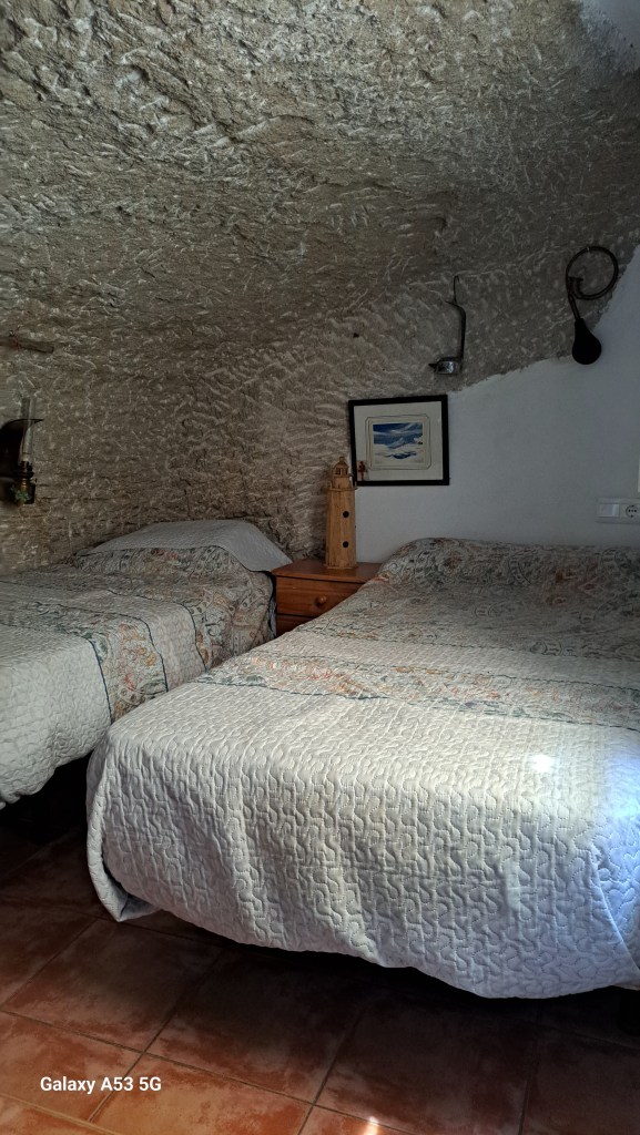 Die Gelegenheit kommt natürlich nicht so schnell wieder, dass man ein Haus, welches direkt unter und an einem Felsen errichtet worden ist, von innen besichtigen kann. Der Besitzer sitzt in seinem Wohnzimmer (die Haustüre öffnet sich direkt in dieses), schaut fern und hüpft jedes Mal auf, wenn jemand zur Tür herein kommt – grüßt, lächelt, verlangt einen Euro und schickt dich die eineinhalb Stockwerke hinauf in sein Schlafzimmer:
