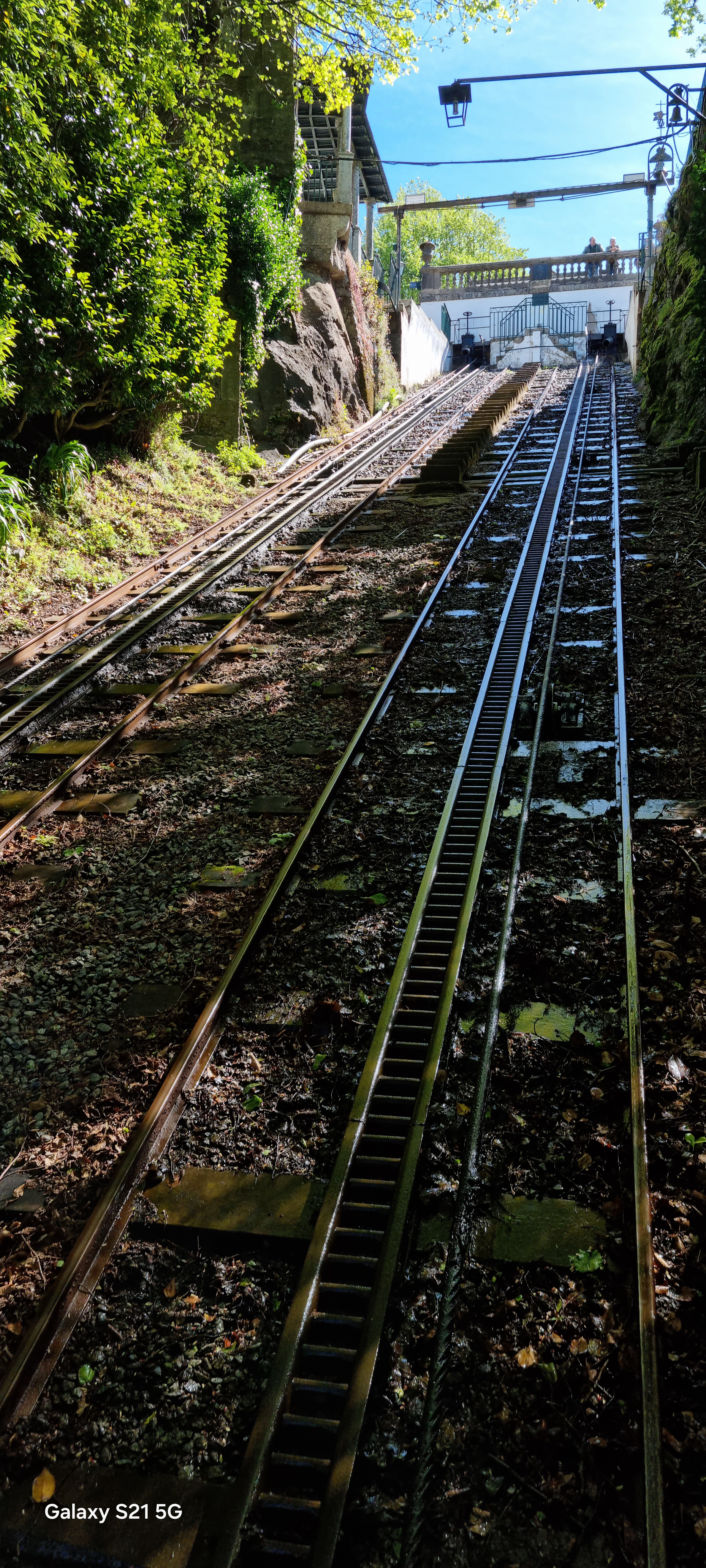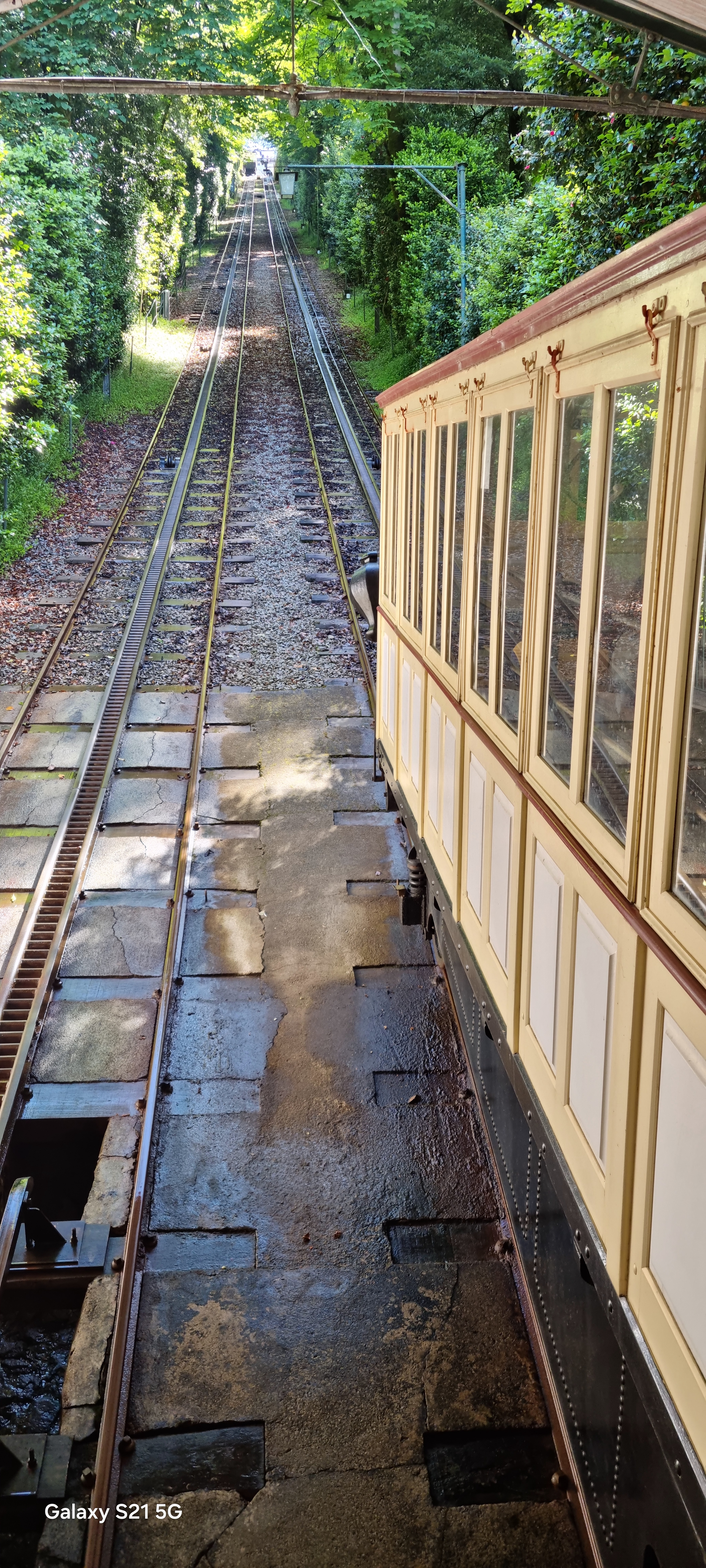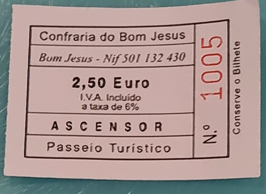 Um die von mir erwähnten 577 Stufen zu erklimmen, fuhr ich (nachdem ich mich per Taxi zur Wallfahrtskirche habe bringen lassen) mit dem „Ascensor“ nach unten. Das ist ja auch so eine Sache: Diese Schrägseilbahn ist die älteste noch funktionierende „Wasserballastbahn“ der Welt. Oben werden 3 – 4000 Liter Wasser eingefüllt, die unten dann wieder abgelassen werden, die Bahn betreibt sich sozusagen von selbst. Und das immerhin seit 1882!