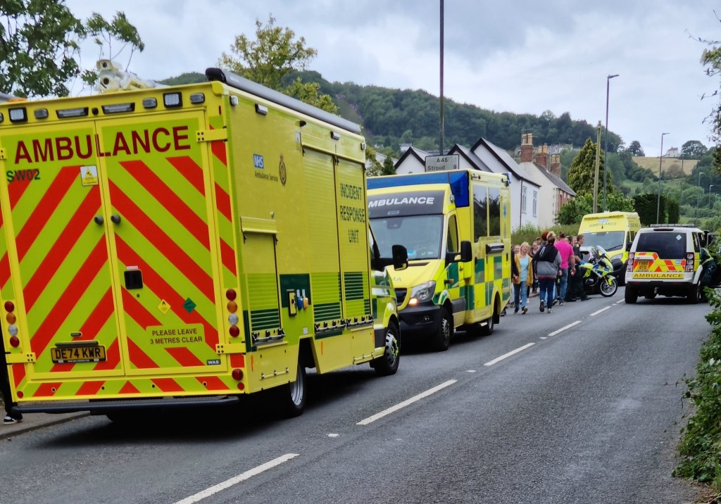 Mein Vormittag: Aufstehen um Viertel nach 6, um 7 schnell Frühstück, mit dem Taxi zum Bahnhof, Schnellzug nach Gloucester, Stadtbus nach Brookworth und dann kommt dieses Schild und die dazugehörigen Einsatzwägen:
