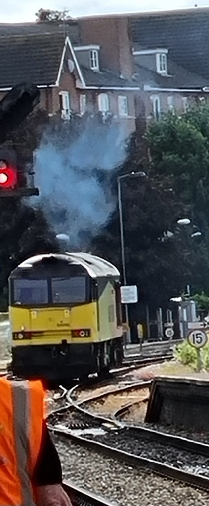 Manchmal denke ich mir zwar, ob die Bahnfahrerei wirklich eine so umweltfreundliche Alternative darstellt. Besonders hier in England, wo immer noch viel mit Diesel gefahren wird. Das schaut dann zuweilen SO aus: