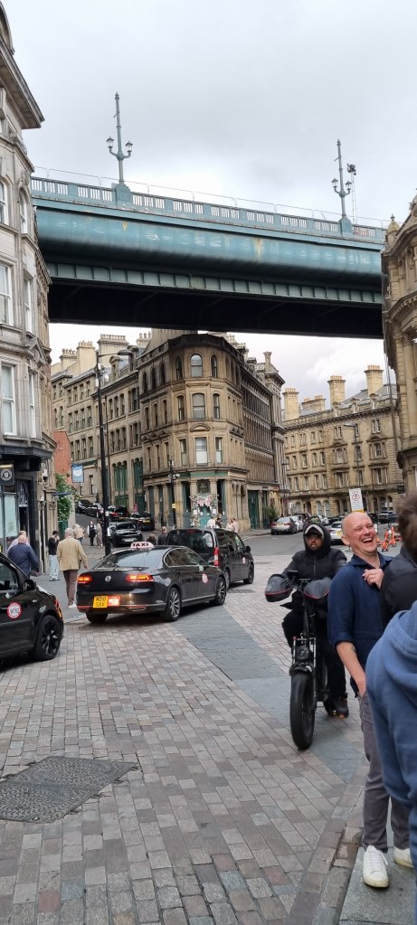 NEWCASTLE: Die Stadt der Brücken, Kirchen und …. Junggesellenabschiede! Noch nie vorher habe ich irgendwo eine derart geballte Ladung an „hen-nights“ (Abschied der Frauen vom Single-Leben) und „stag-nights“ (dasselbe, nur halt bei Männern) mitbekommen, wie in dieser Stadt im Nordosten Englands. Es waren sicherlich an die 50 oder 60 Gruppen, die in Feierlaune schon um 7 Uhr abends durch die Stadt zogen. Alle Nachtclubs (und derer gibt es viele!) haben bereits zu dieser Zeit geöffnet, nüchtern scheint kaum jemand zu sein, das Geschrei in den entsprechenden Stadtvierteln ist ohrenbetäubend. Einheimische haben unsere Eindrücke bestätigt – N. ist anscheinend die Hauptstadt Großbritanniens, was Junggesellenabschiede betrifft …
