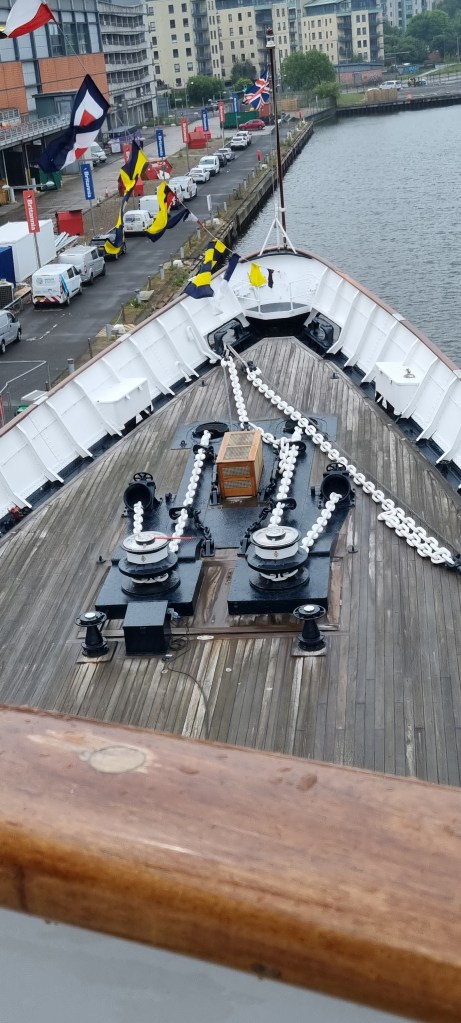 Wenn man sich schon in E. aufhält ist ein Besuch auf der ehem. königlichen Yacht „Britannia“ fast schon eine Verpflichtung. Vom Stapel gelaufen ist die „Britannia“ im selben Jahr wie ich, sie wurde aber 1997 aufgrund der hohen Kosten außer Dienst gestellt (da habe ich noch 21 Jahre lang gearbeitet). Zu 700 Staatsbesuchen hat das Schiff Königin Elizabeth II und andere Mitglieder der königlichen Familie befördert, heute kann sie auf 5 Decks besichtigt werden.