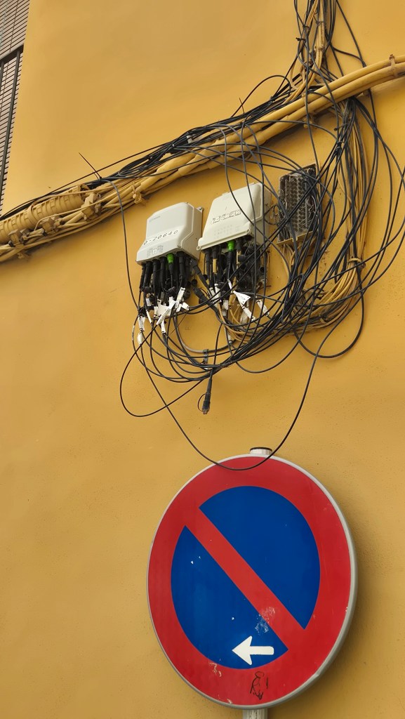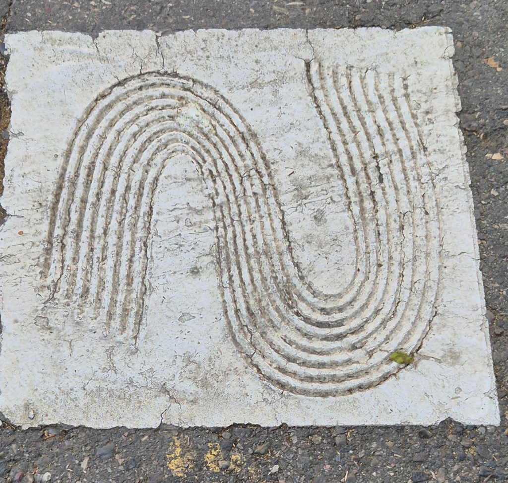 Erneuter Themenwechsel: Wie spart man sich beim Anbringen von Zebrastreifen viel Farbe? Ganz einfach: Man malt anstatt Streifen nur links und rechts ein ca. 70 x 70 cm großes Viereck – den Rest muss man sich halt denken. Damit aber nicht genug des Sparens: Zusätzlich spachtelt man noch ein großes verkehrtes „S“ (für Sebrastreifen???) hinein und kann auch die damit gewonnene Farbe andersweitig verwenden – schlau sind sie, die Spanier, gell.