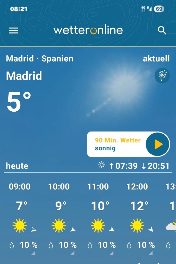 Aber … heute in der Früh in Madrid war ich doch wieder froh drum!!!