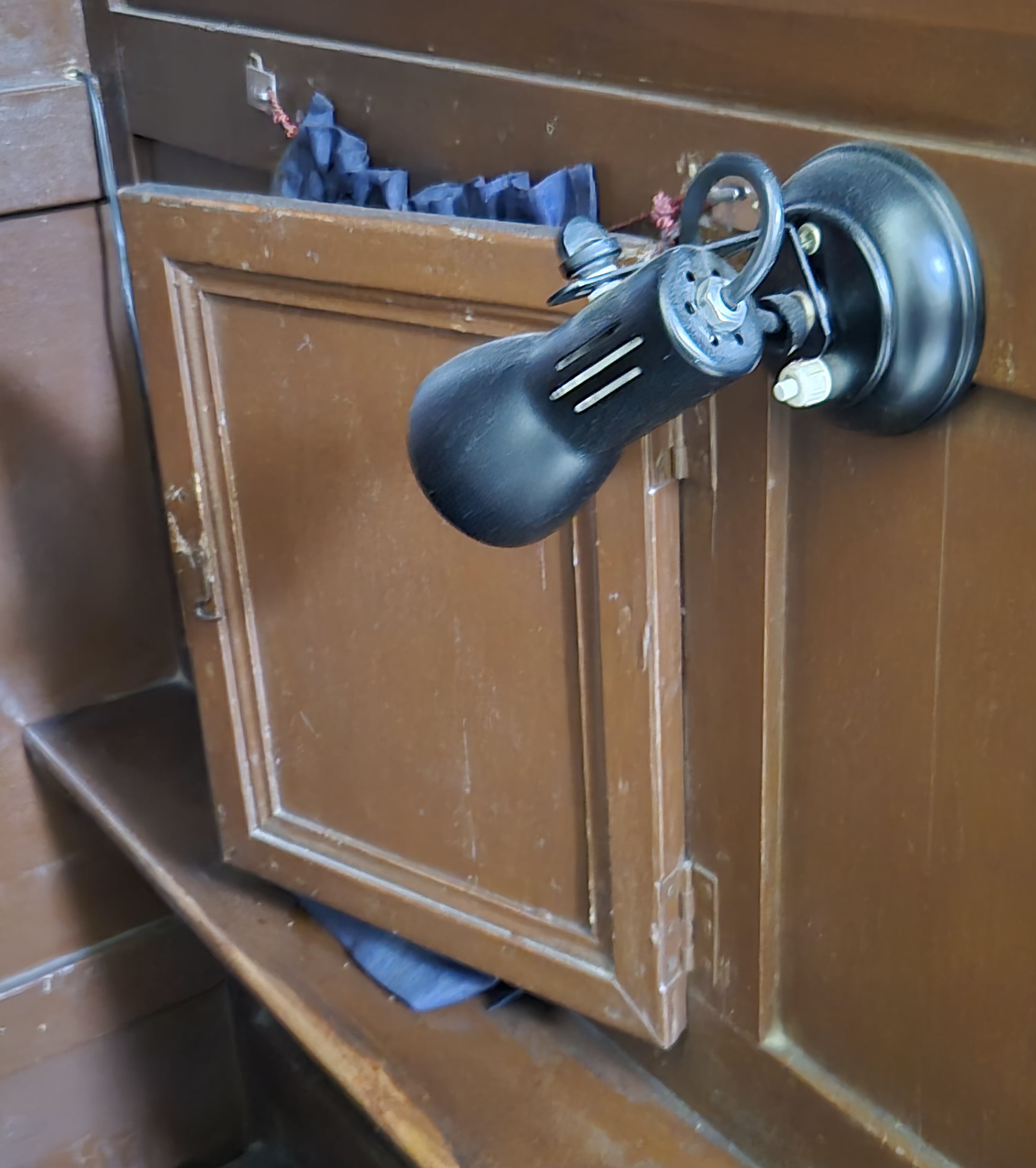 … der ältere schaut schon ein bisschen besser aus (der Geschmack liegt selbstverständlich im Auge des Betrachters!) und ist sogar mit einem Spot ausgerüstet. Hat man damit früher etwa die Beichtenden geblendet, damit sie nicht sehen konnten, ob sie WIRKLICH mit dem Pfarrer gesprochen haben? – Wer weiß?