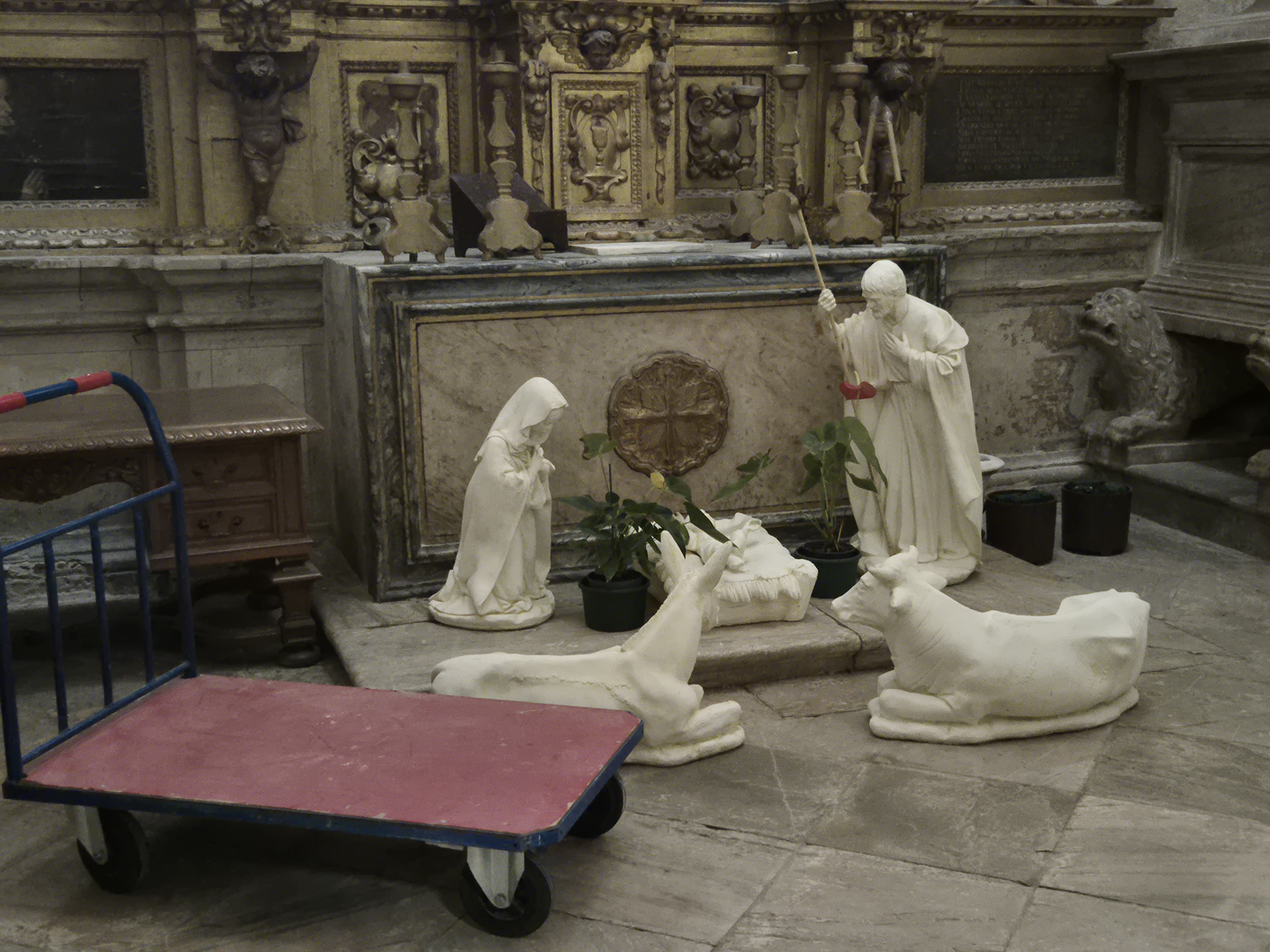 Aber auch NICHT Alltägliches erschließt sich dem Besucher bei genauerem Hinsehen: So gibt es nun endlich den Beweis dafür, dass die Hl. Familie – wenn schon nicht motorisiert war, so doch ein mobiles Transportmittel zur Verfügung hatte – davon war bisher im Weihnachtsevangelium nie die Rede!