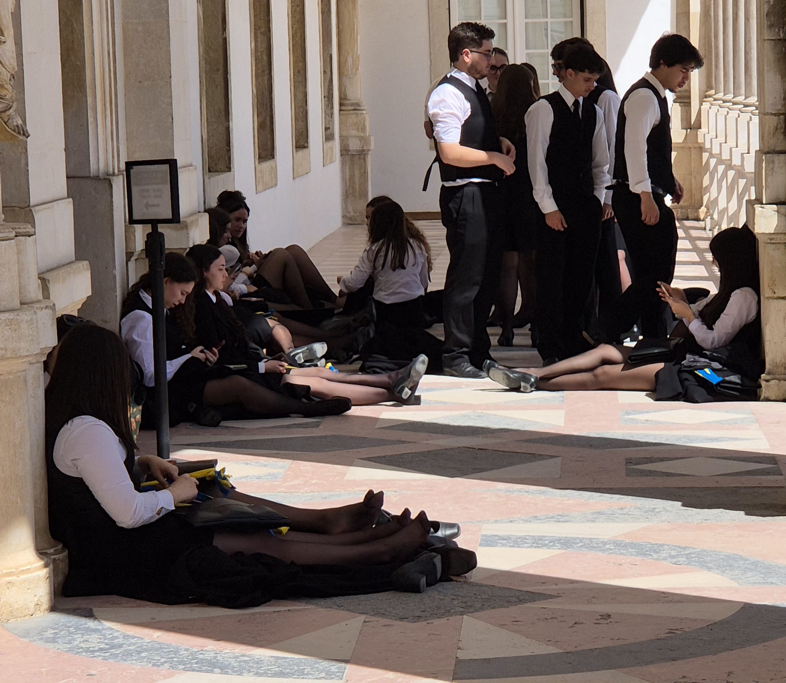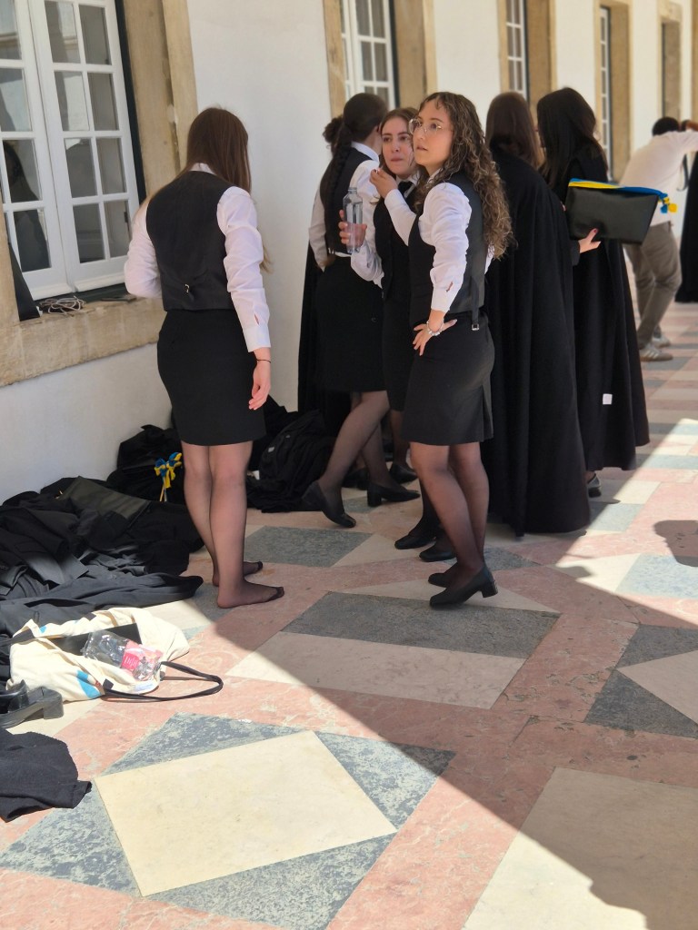 Übrigens: Den langen schwarzen Umhang tragen die Studenten erst nach dem erfolgreich abgeschlossenen ersten Jahr. Dann ist es aber auch nicht Pflicht, aber sehr viele tragen ihn aus Tradition über der „Uniform“ – mir gfallts!