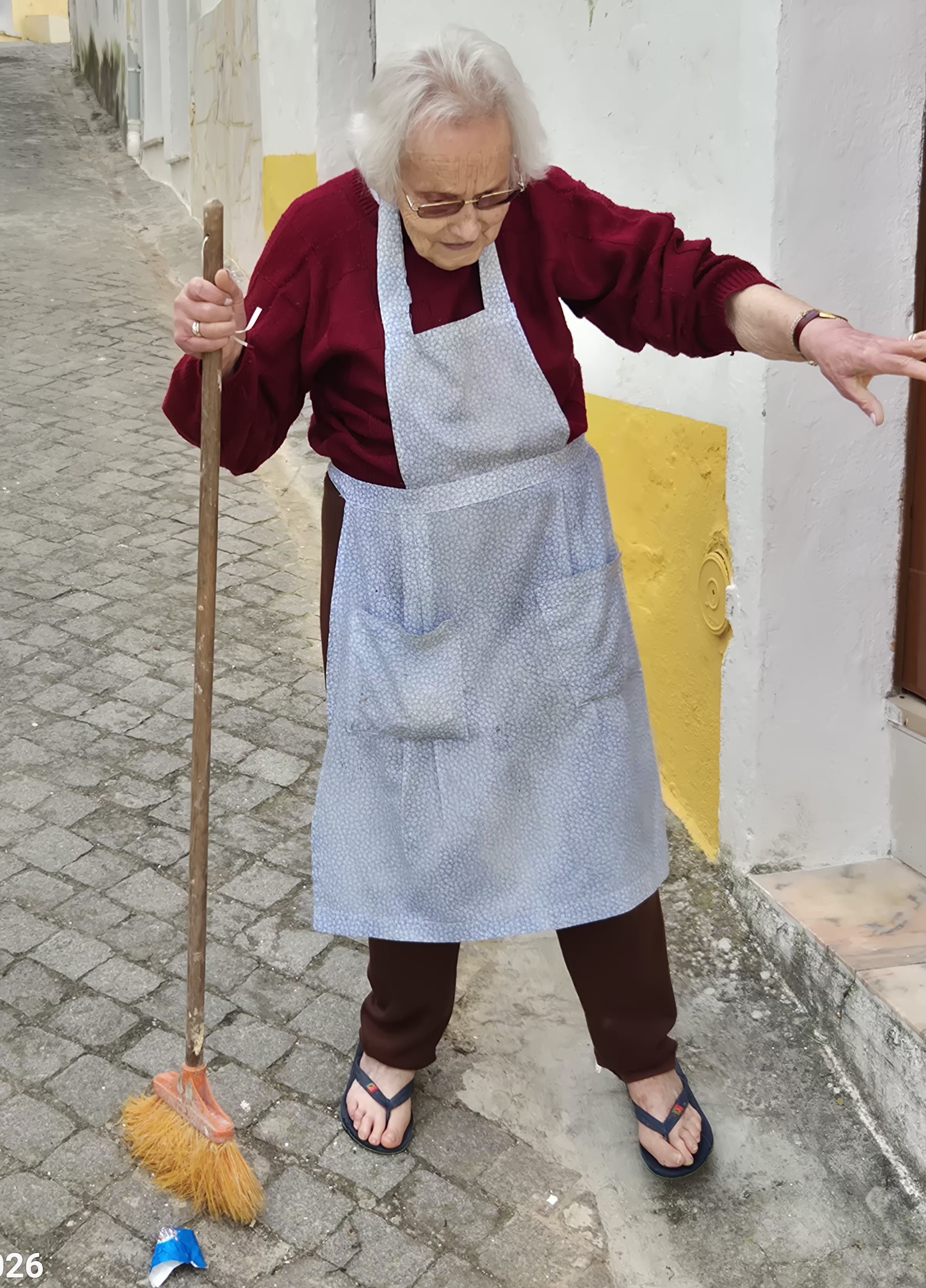 Die Frauen – so scheint es – widmen sich eher weniger wortgewaltigen Arbeiten wie Blumen gießen, zusammenkehren usw.